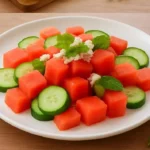 Watermelon Salad is a delightful summer dish that offers a refreshing burst of flavor, perfect for any gathering or just a light snack on a hot day. With juicy watermelon chunks balanced with a hint of lemon and a sprinkle of black salt, this salad is not just a treat for the taste buds, but also a fun dish to prepare. Whether you’re hosting a picnic, enjoying a family barbecue, or simply looking for a light and satisfying side, this recipe shines with simplicity and freshness.